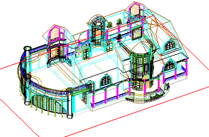 3 D house detail dwg file, main gate detail, round shape window detail, etc.