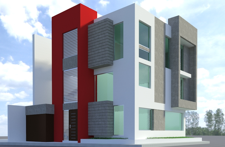 Office building 3 D view detail dwg file, including front elevation detail, door and window detail, etc.