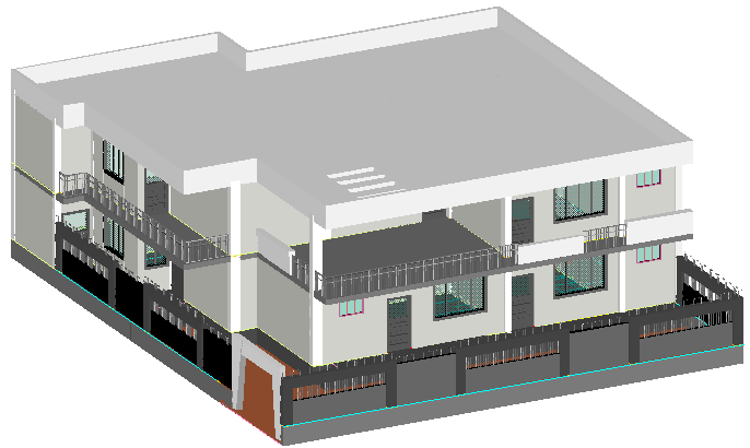 3 D view factory detail dwg file, including parabola detail, reeling detail, furniture detail with door and window detail, etc.
