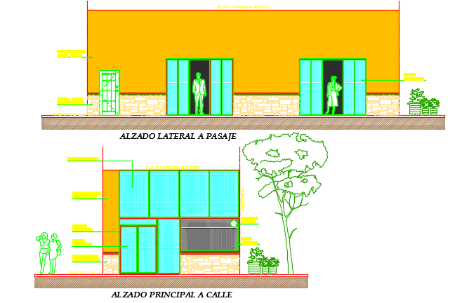 Elevation pizzeria detail dwg file