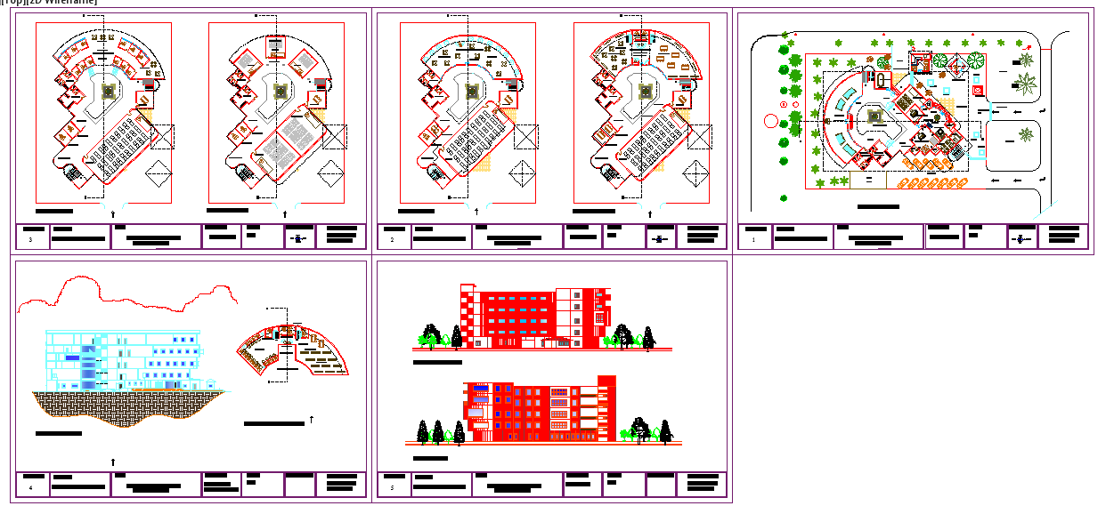 This School Detail Project DWG file provides a comprehensive architectural design of a modern educational building. It includes detailed floor plans, classroom layouts, sections, elevations, and site arrangements designed to meet academic infrastructure standards. The drawing showcases functional zoning for classrooms, administrative areas, playgrounds, and landscaped surroundings. The curved and symmetrical design enhances natural lighting and ventilation, promoting an energy-efficient environment ideal for learning.