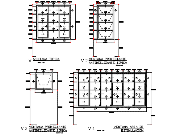 Typical window detail dwg file, with section line detail, dimension detail, naming detail, etc.