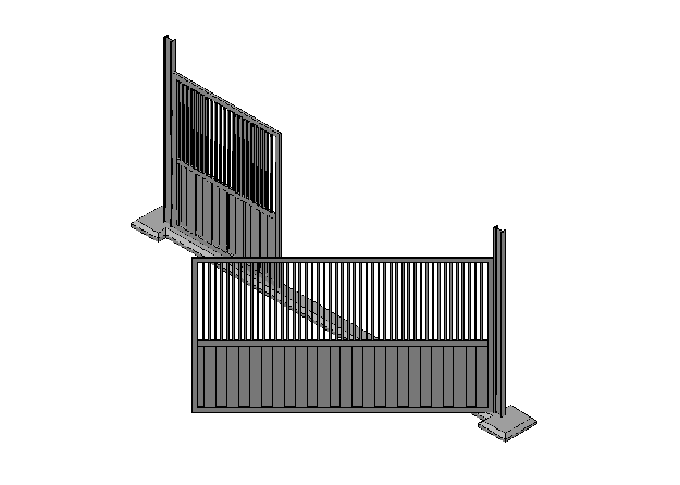 3D details of access Gate,, top view and complete elevation in auto cad format