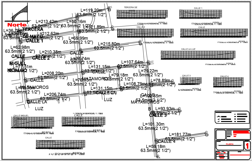 Construction of water distribution network layout plan dwg file. with dimension detail, naming detail, plan and section detail, etc.