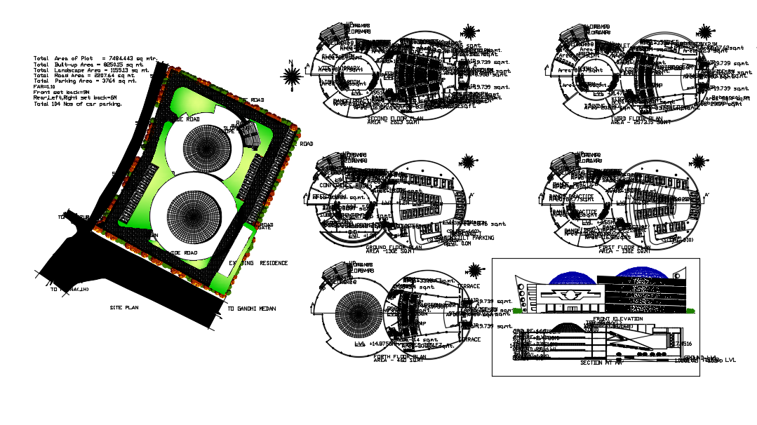 Auditorium Layout plan dwg file. elevation of a big Auditorium design, with layout plan and all details and furniture detailing