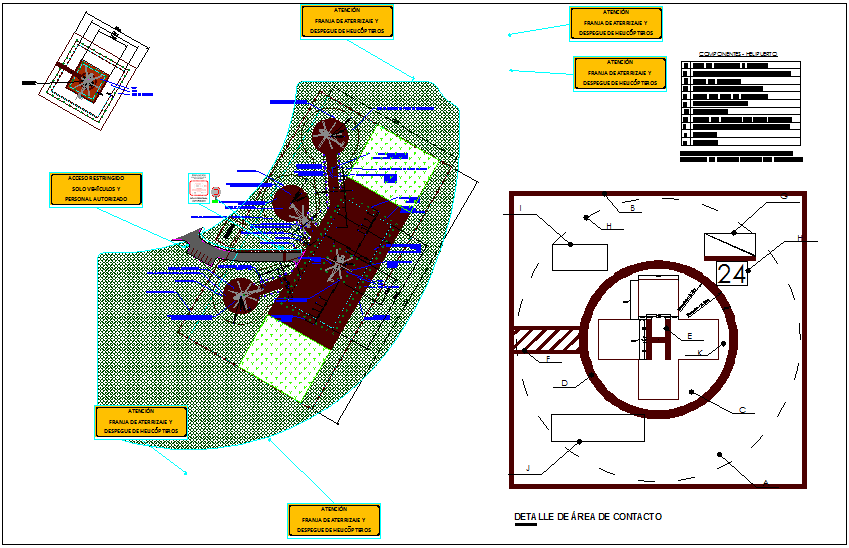 Super Hospital plan with helicopter view with detail of contact area dwg file