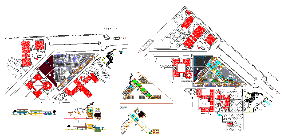 School Design Plan DWG with Site Layout, Building Blocks and Sections
