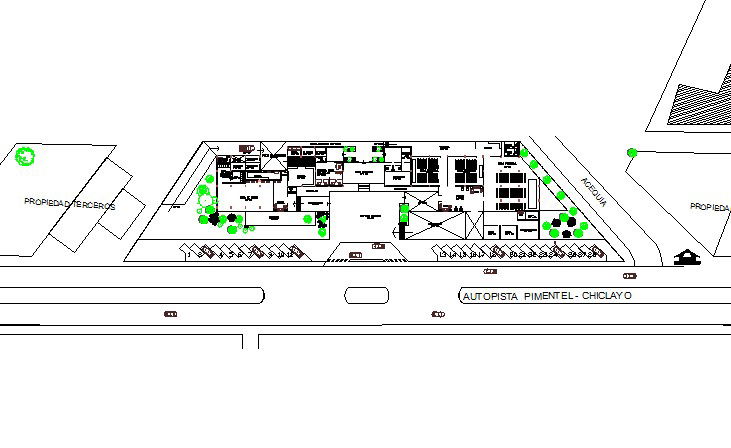 Working restaurant and conventions center detail dwg file, with section line detail, centre line plan detail, landscaping detail with plant and tree detail, etc.