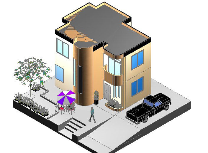 Ground floor to terrace floor 3 D house plan detail dwg file, gazebo detail, landscaping detail with plant and tree detail, etc.