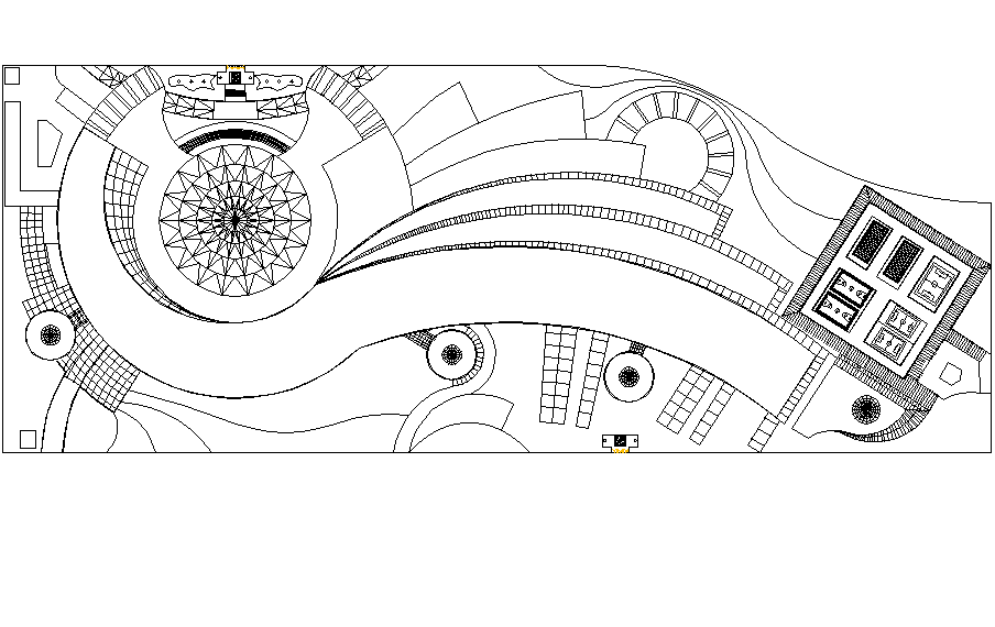 Detail drawing of layout of art faculty campus. roof plan of art faculty campus with the shell view of building , site plan , foot ball ground, basket ball ground detail and etc.