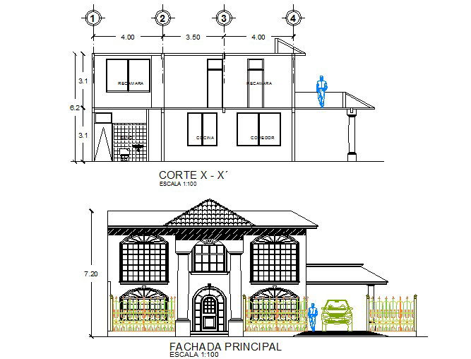 Project housing plants detail dwg file, including front elevation and section detail, center line plan detail, dimension detail, naming detail, scale 1:100 detail, etc.