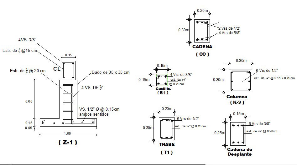 Foundation and column section detail dwg file, including bolt nut detail, dimension detail, naming detail, etc.