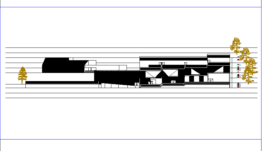 Elevation detail of public library. Elevation of building with, door window detail, with levels and dimensions detail, different types of glass window detail and other detail.