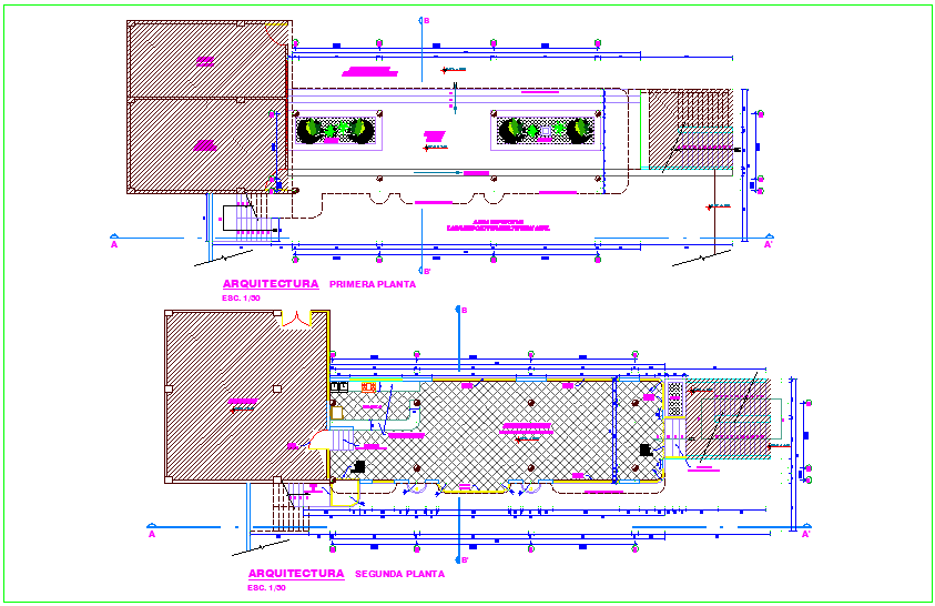 Dining room first and second floor plan of school area dwg file