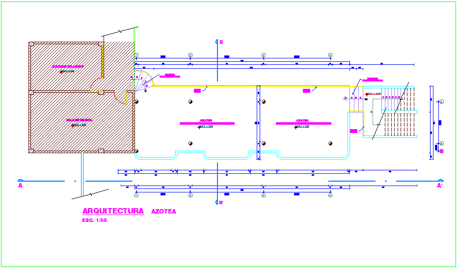 Roof top plan of school area dwg file in plan with view of area view and view of wall,
