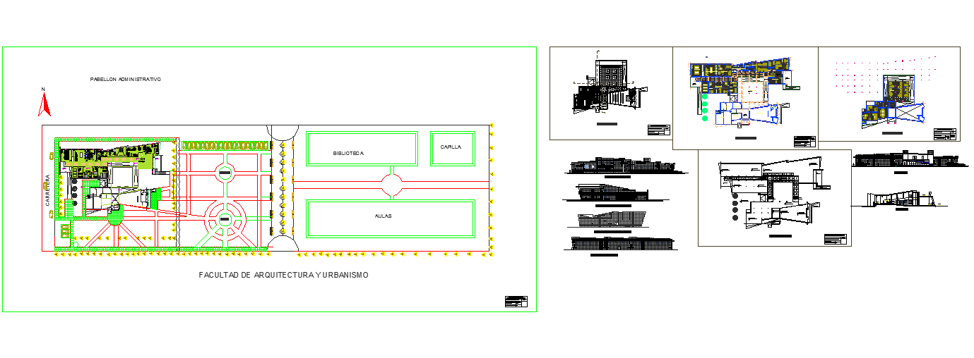 This AutoCAD DWG file showcases a detailed official building design created for an institutional complex layout. The drawing features a complete architectural plan including the administrative pavilion, classrooms, library, and landscaped circulation areas. The plan demonstrates how functional and aesthetic elements are harmoniously integrated within the architectural campus of the Faculty of Architecture and Urbanism.