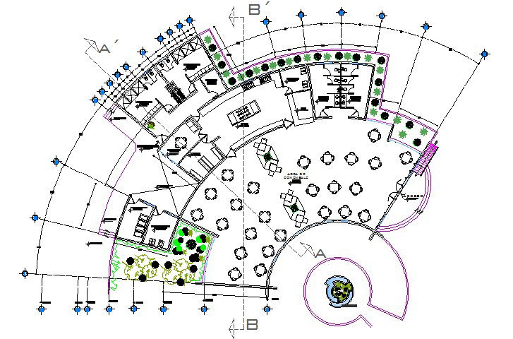 Restaurant club plan detail dwg file, with section line detail, center line plan detail, dimension detail, naming detail, furniture detail plan chair and table detail, etc.