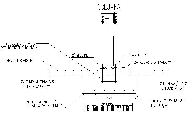 Foundation to column section detail dwg file, including reinforcement detail, naming detail, bolt nut detail, etc.