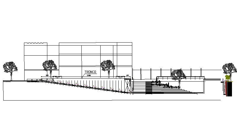 Section cultural center detail dwg file, including dimension detail, landscaping detail with tree detail, etc.