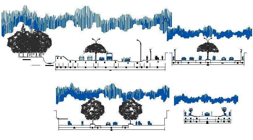 Regional government building section detail dwg file, with street light detail, car parking detail, landscaping detail with tree and plant detail, etc.