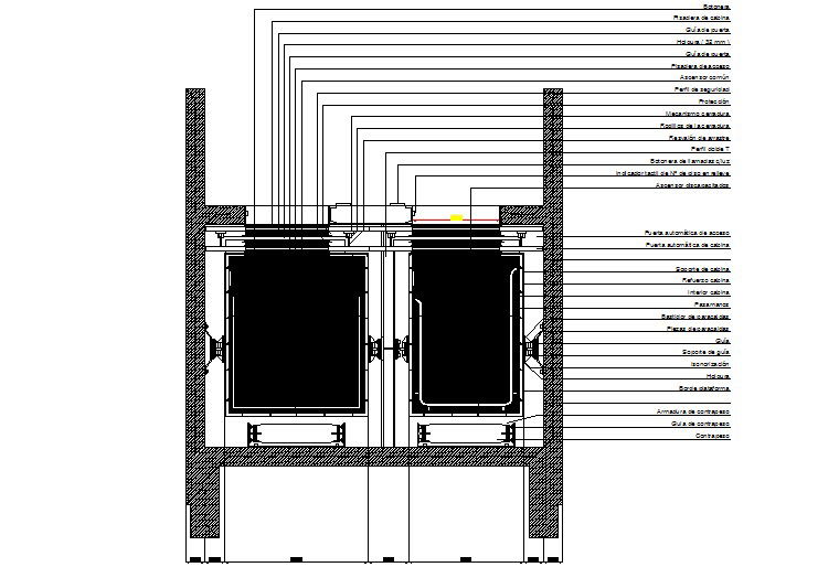 Elevator section detail dwg file, with naming detail, dimension detail, etc.