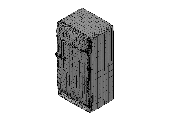 3d drawing of fridge dwg file, here there is front elevation details of a fridge in auto cad format