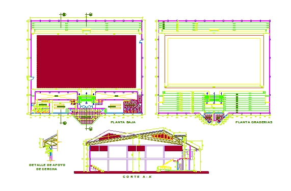 Polysport DWG File with Plan,Front Elevation,Detail of support etc.