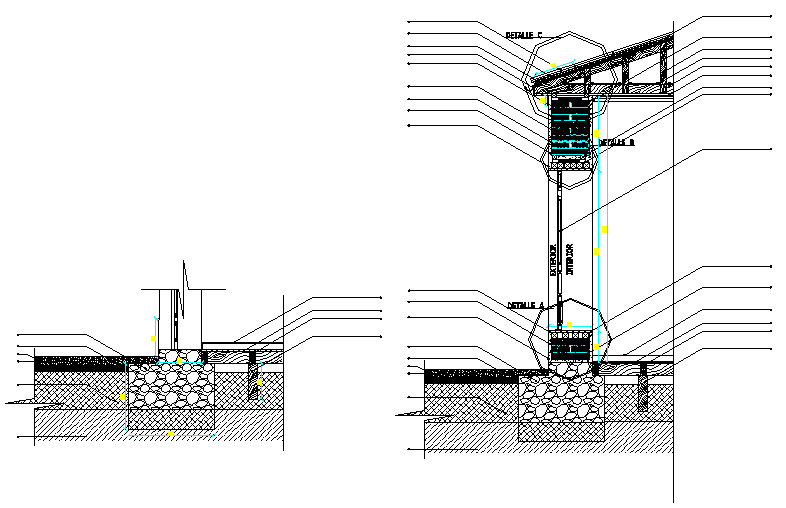 Section in house detail dwg file, dimension detail, naming detail, stone detail, reinforcement detail, etc.