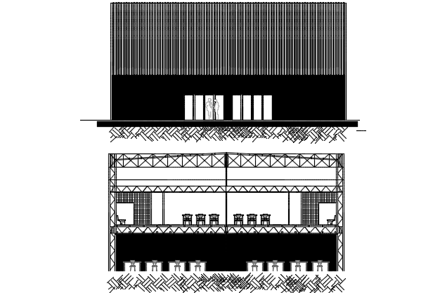 Class room elevation and section detail dwg file, with furniture detail in chair, table, door and window detail, etc.