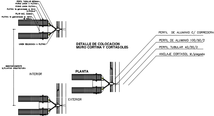 Detail wall steel curtain dwg file, with plant and exterior detail, naming detail, naming detail, etc.