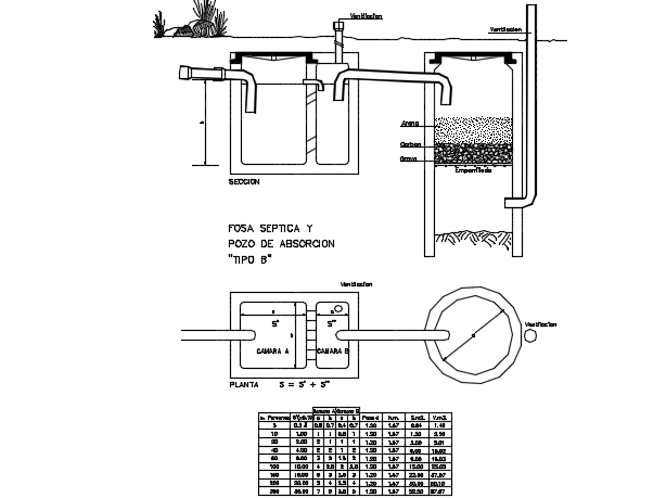 Elemental system septic grave detail dwg file, with plan and section detail, naming detail, table specification detail, etc.