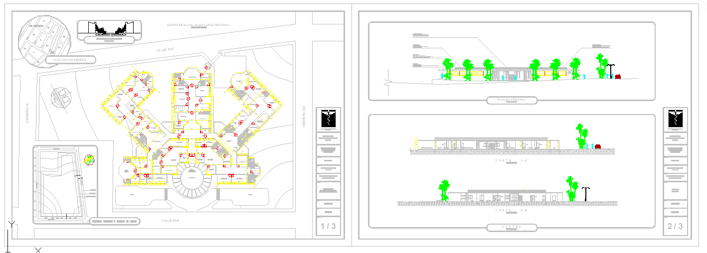 Clinic Centre DWG with Floor Plan Elevation Section and Site Layout