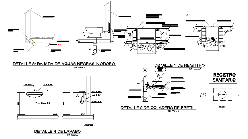 Bathroom elevation design dwg file, details of wc and wash basin is shown, with text details