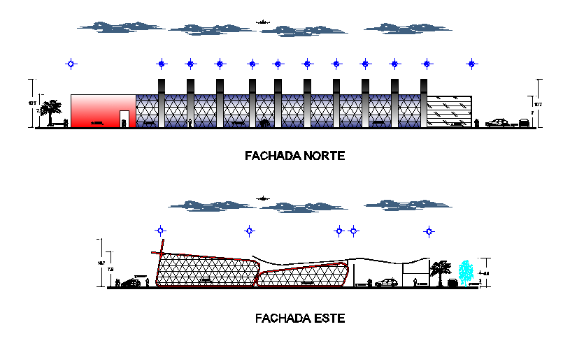Sectional elevation of a posh buiiding, new and modern architecture details in auto cad format