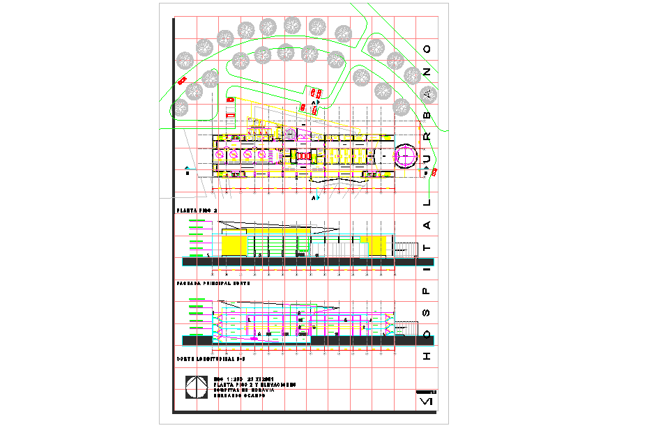 Hospital Design DWG with Floor Plan Elevation and Longitudinal Section