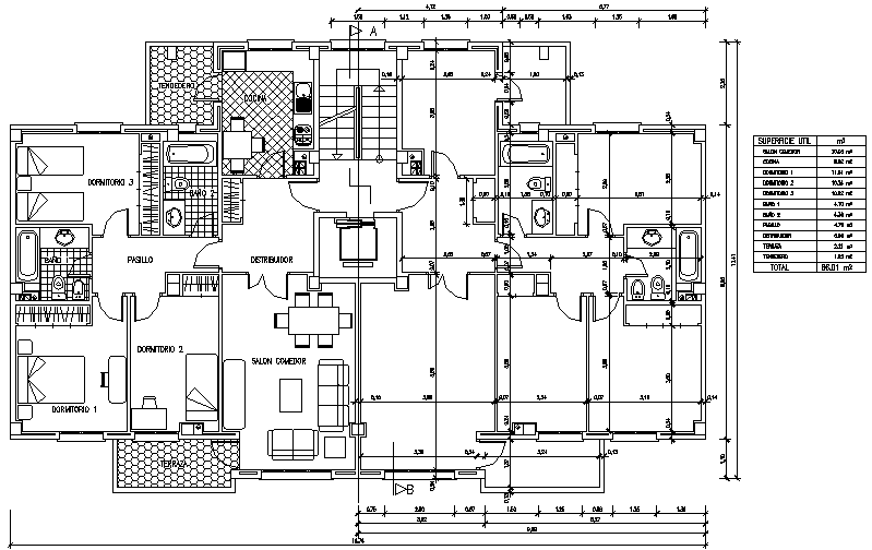 House building plan detail dwg file, including dimension detail, section line detail, door and window table detail, etc.