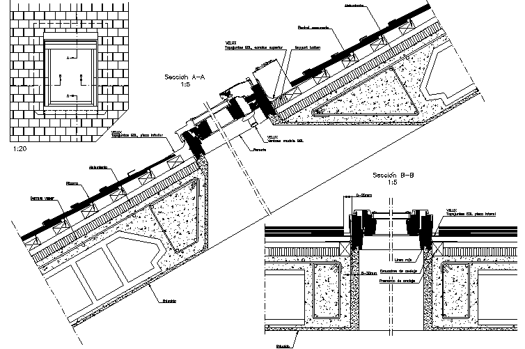 Window detail on inclined roof detail dwg file
