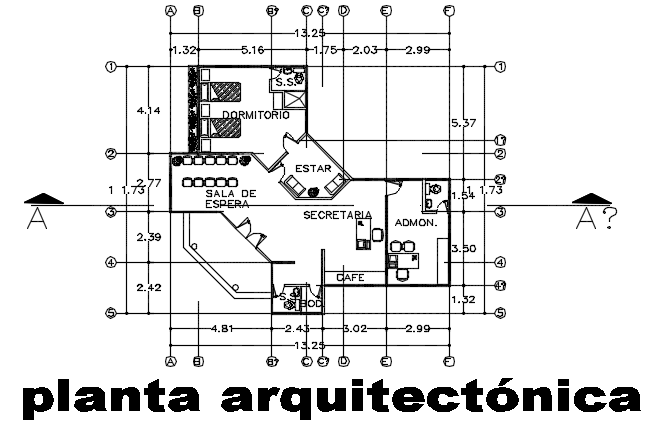 Architect planning detail dwg file, with section line detail, center line plan detail, dimension detail, naming detail, etc.