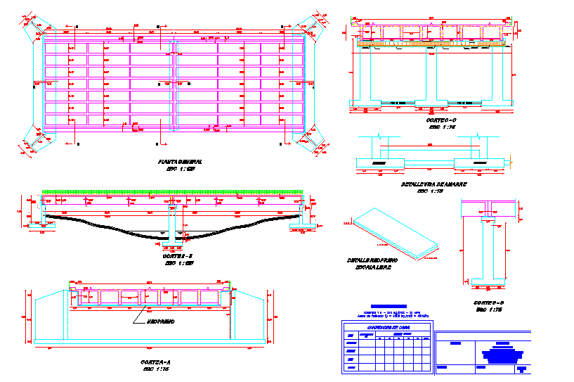 BridgeDWG file with Section detail,Elevation ,longitudinal cut,Neoprene detail,detail of beam of mooring