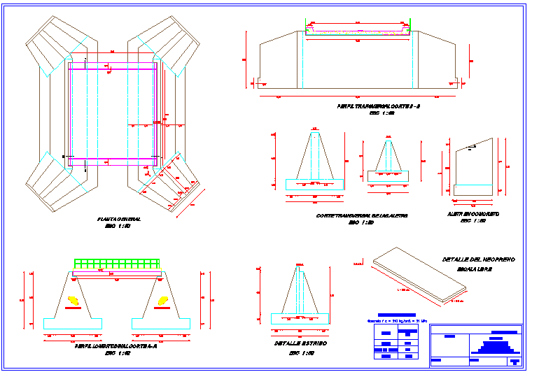 Pantoon BridgeDWG file with Estribo detail,detail of Transversal cutting of the Fins