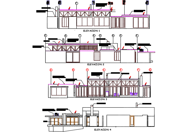 Elevation house detail dwg file, including front elevation detail, left elevation detail, right elevation detail, back elevation detail, etc.