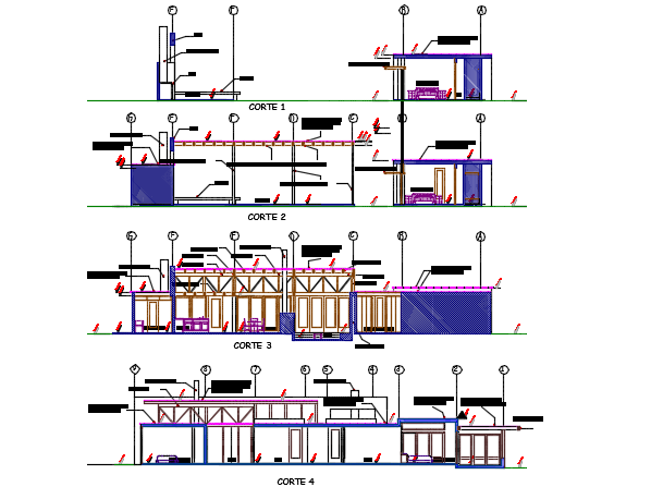 Section house plan detail dwg file, with center line plan detail, dimension detail, naming detail, etc.