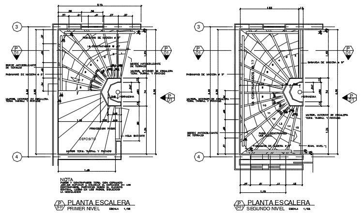 Fan stair between stair detail dwg file, with section line detail, dimension detail, naming detail, etc.