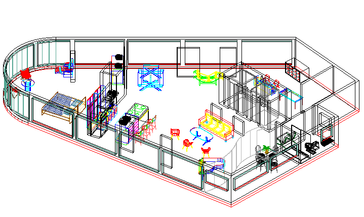 Furnished department detail dwg file, with furniture detail in sofa, chair, table, bed, door and window detail, etc.