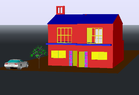 One family 3 D house detail dwg file, with landscaping detail with tree detail, chimney detail, car parking detail, etc.