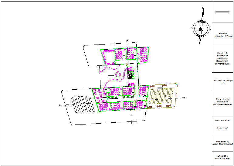 First floor plan of medical center dwg file in plan with view of area view,entry way,outdoor garden,Medical class center area with necessary detail.
