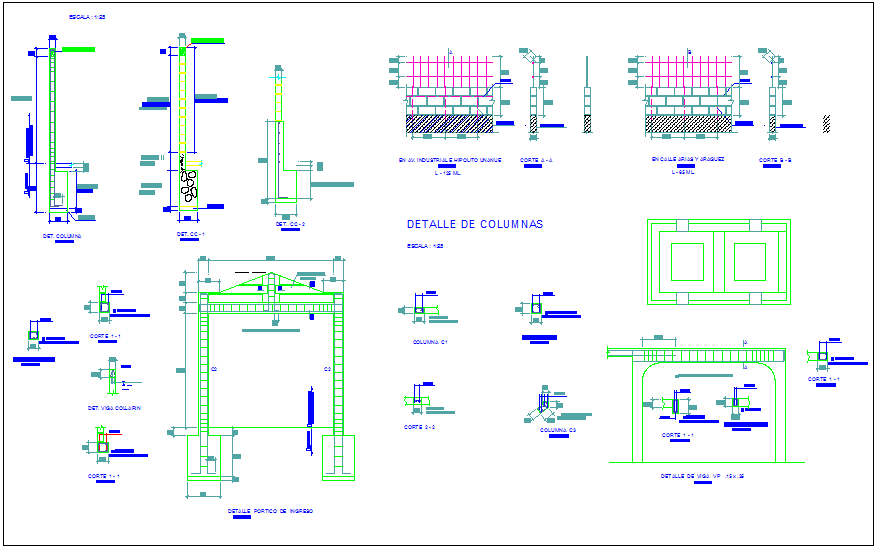 Construction detail with wall and wall support dwg file in detail view of wall,wall wall support sectional view and view of gate design with different types of column with column section with necessary detail and dimension.