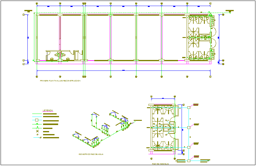 Sanitary installation view of education center dwg file