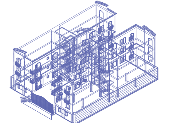 Apartments building 3 D plan detail dwg file, with block divided detail, stair detail, balcony detail with reeling detail, etc.