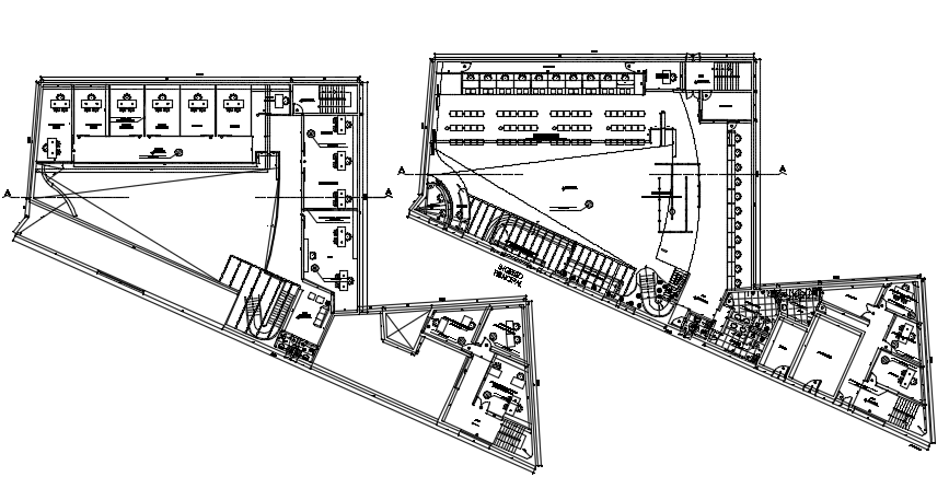 Office building plan detail dwg file, including section line detail, dimension detail, naming detail, furniture detail with table, chair, door and window detail, etc.